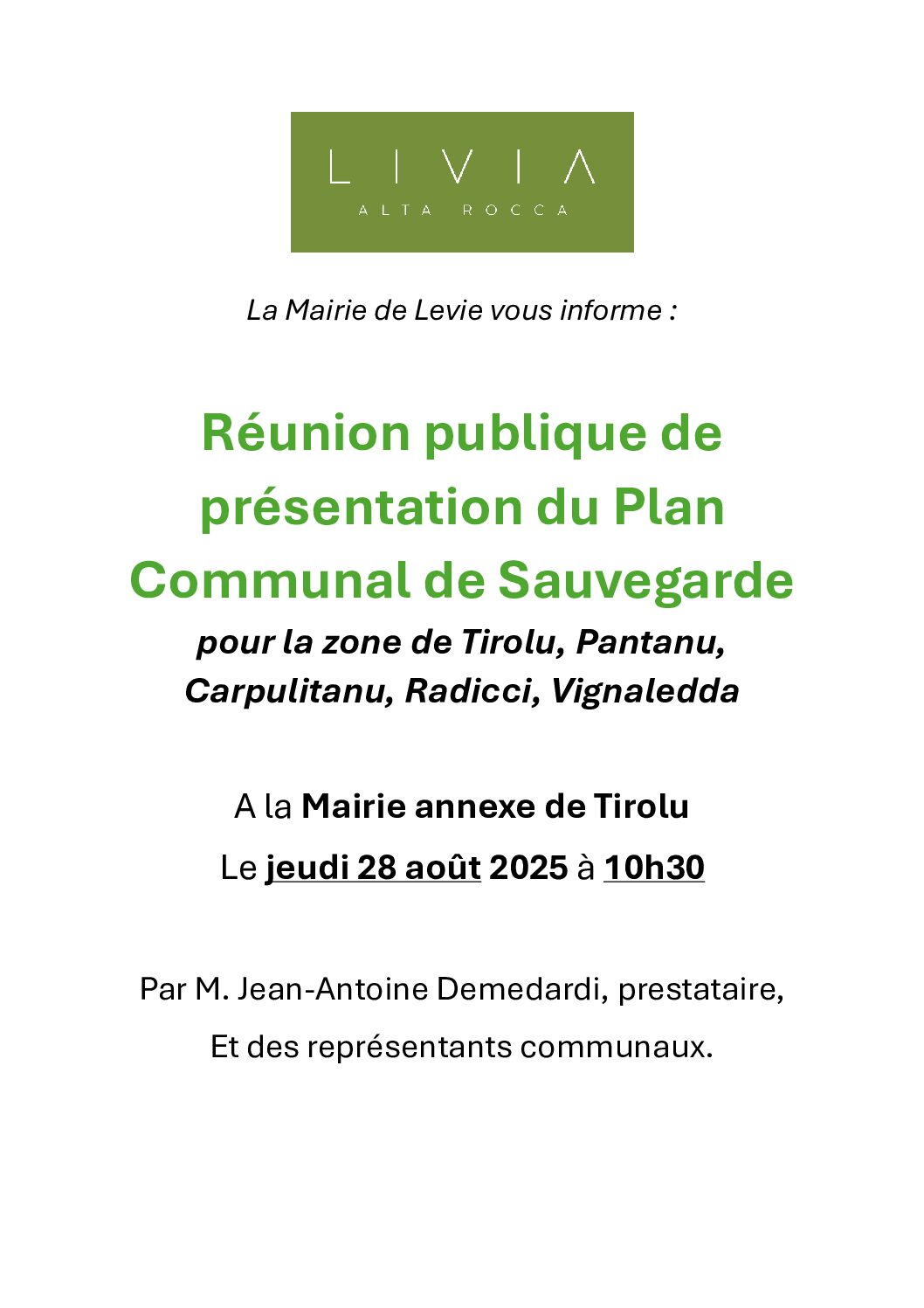 La Mairie de Levie vous informe :